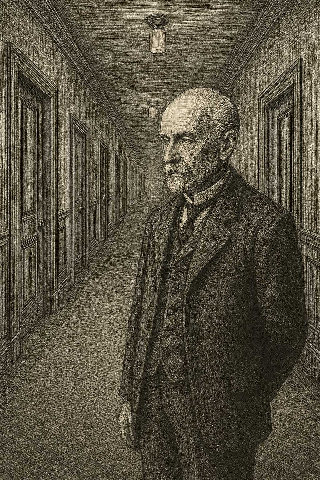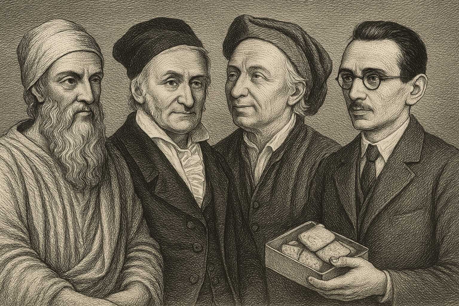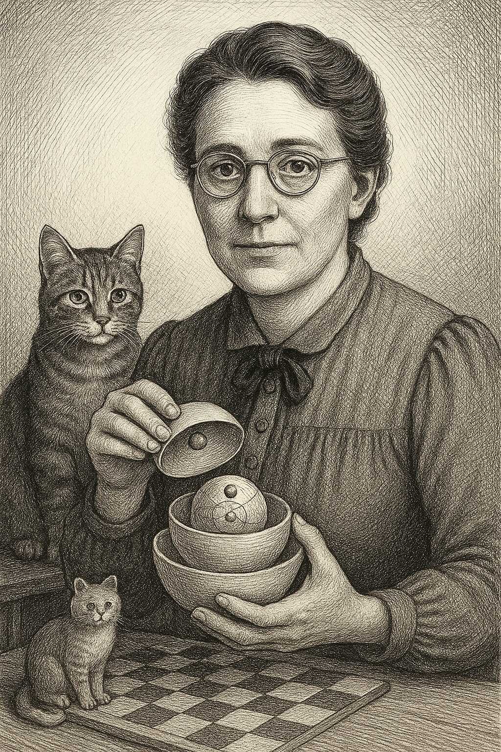 Die Bilder sind von OpenAI mit dem Modell 4-o generiert. Ab dem Bild von Schrödinger und seiner Katze sind in fast allen folgenden Bildern Katzen dargestellt. Da Katzen allerdings ein wichtiges Mem sowohl in der Quantenmechanik als auch im Supervised Learning sind, habe ich es irgendwann aufgegeben, in jedem Prompt “Keine Katzen, keine Kisten, keine Kekse” anzufügen, zumal der Generator sich ohnehin nicht daran gehalten hat. Es bedurfte auch einiger Hartnäckigkeit, die Flure von Hilberts Hotel katzenfrei zu halten, dafür lief David Hilbert plötzlich mit der Schürze von Schönbeins Frau herum, warum auch immer. Weitere Artefakte sind Bücher zu Rust sowie das Rust-Logo im Auenland, sicher inspiriert von meinen anderen Chats mit OpenAI.